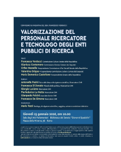Il Convegno intende offrire un momento di approfondimento e riflessione sulla valorizzazione del personale della ricerca pubblica, sulle condizioni di benessere organizzativo e sulle possibili prospettive di sviluppo del sistema nazionale della ricerca.