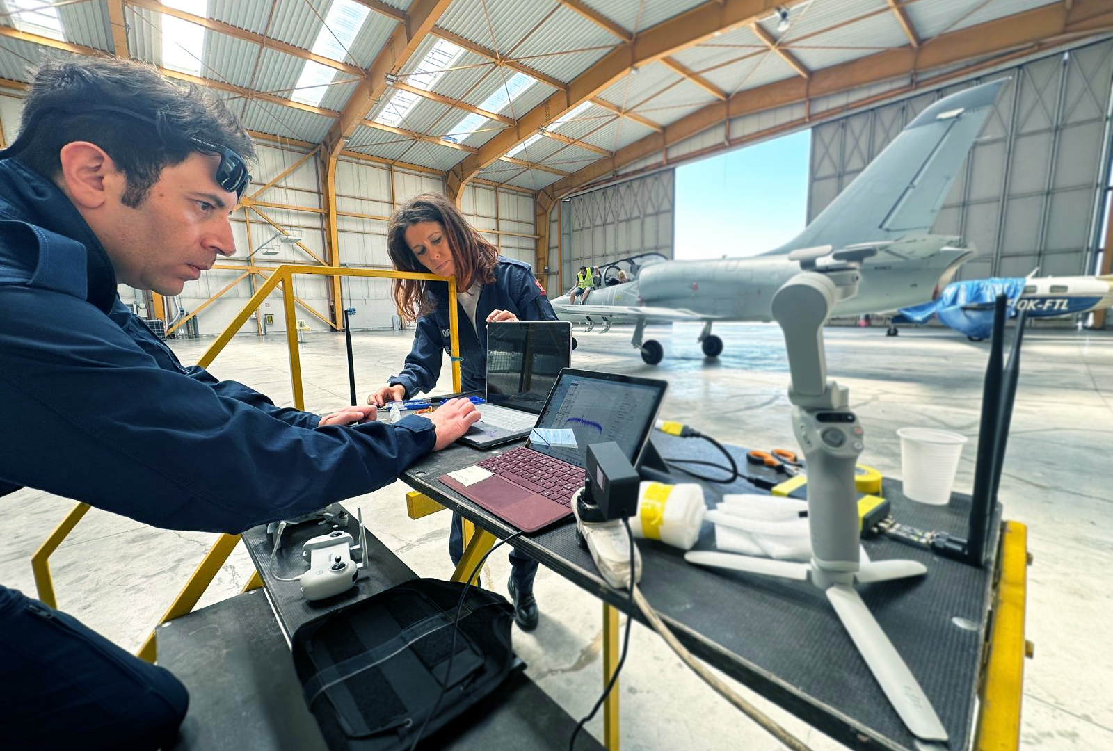 L. Paciucci e P. Carlucci durante le fasi di test presso l’aereoporto di Ancona-Falconara